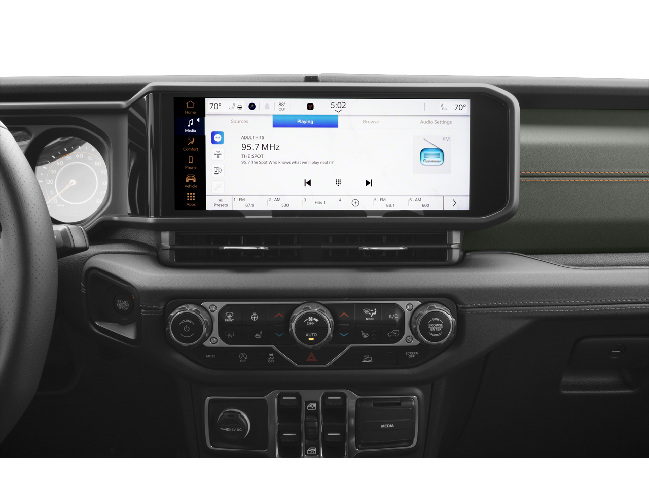 12.3 Touchscreen Display, 4G LTE Wi-Fi Hot Spot, Alexa Built-In, Alpine Premium Audio System, Apple CarPlay, Auto High Beam Headlamp Control, Auto-Dimming Rear-View Mirror, Blind Spot & Cross Path Detection, Bluetooth® Wireless Speaker, Body Color 3-Piece Hard Top, Body Color Rubicon Highline Flare, Connected Travel & Traffic Services, Connectivity - US/Canada, Emergency/Assistance Call, Freedom Panel Storage Bag, Full Length Floor Console Premium Armrest, Google Android Auto, GPS Antenna Input, GPS Navigation, HD Radio, Heated Front Seats, Heated Steering Wheel, Integrated Center Stack Radio, Integrated Off-Road Camera, Integrated Voice Command w/Bluetooth®, Leather Trimmed Bucket Seats, Leather Wrapped Park Brake Handle, Leather Wrapped Shift Knob, Mojave X Package, MOPAR Hardtop Headliner, No Soft Top, ParkSense Rear Park Assist System, Power 4-Way Driver Lumbar Adjust, Power 4-Way Passenger Lumbar Adjust, Power Adjust 8-Way Driver Seat, Power Adjust 8-Way Front Passenger Seat, Premium Door Trim Panel, Quick Order Package 23A Mojave X, Radio: Uconnect 5 Nav w/12.3 Display, Rear Armrest w/Cupholder Seat, Rear Sliding Window, Rear Window Defroster, Rock Protection Sill Rails, SiriusXM Radio Service, SiriusXM w/360L, Steel Front Bumper, Steel Rear Bumper, USB Host Flip.